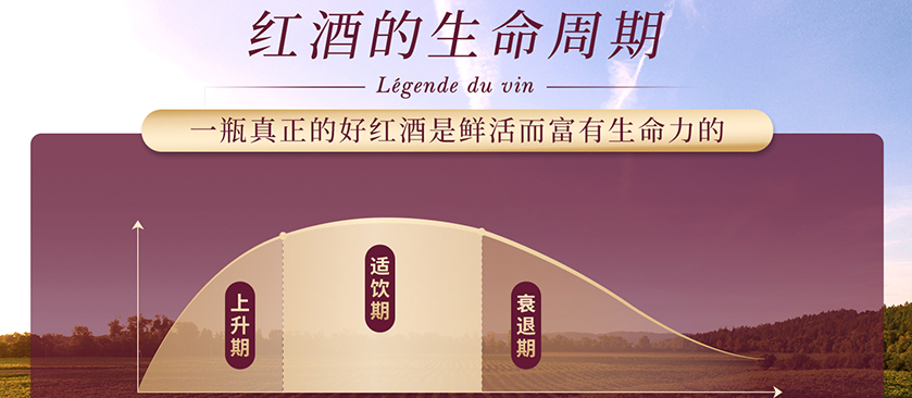 不管是新酒还是陈年酒,在装瓶后,都有一个完整的生命周期,包括,上升期、适饮期、衰退期三个阶段。