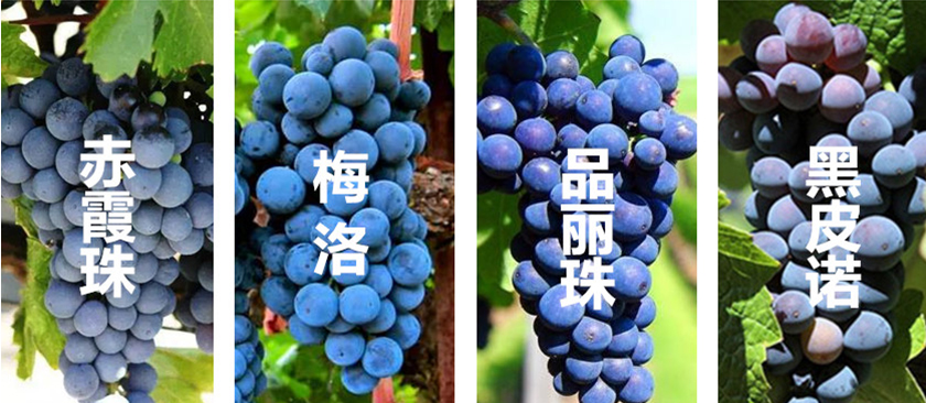 葡萄品种决定红酒口感的基调。在法国,酿造红酒的4大主流品种有:赤霞珠(CabernetSauvignon)、梅洛(Merlot)、品丽珠(Cabernet Franc)、黑皮诺(Pinot Noir)
