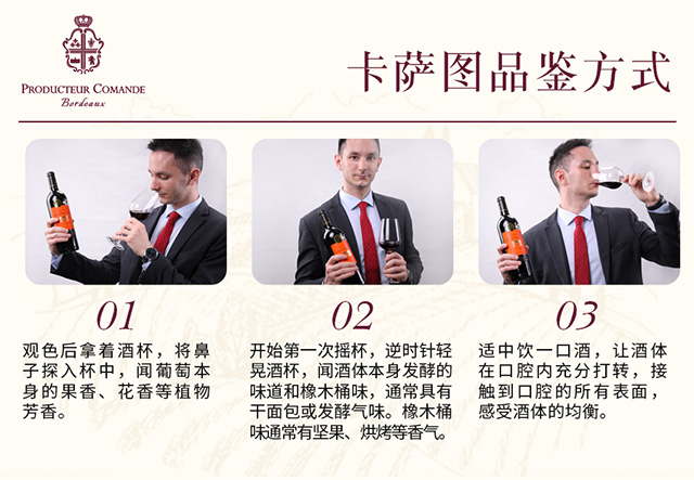 想要完整感受卡萨图的风味,遵循系统的品鉴方法是最好的选择。现在请跟随我们的脚步,一起品鉴卡萨图,步骤主要有三步:
