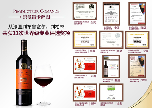 一款优质的葡萄酒,必定也会受到葡萄酒专家的青睐。卡萨图经过多位专家的专业品鉴后,荣获11个国际奖项,包括德国柏林葡萄酒大奖赛金奖、波尔多-阿基坦葡萄酒大赛金奖、法国吉伯特&盖拉德葡萄酒指南银牌、法国马贡葡萄酒大赛银牌、妃品丽女性全球品酒大赛银牌等。卡萨图在美国著名葡萄酒杂志《葡萄酒爱好者》的品鉴中也饱受好评,是上梅多克产区当之无愧的旗舰精品酒款。