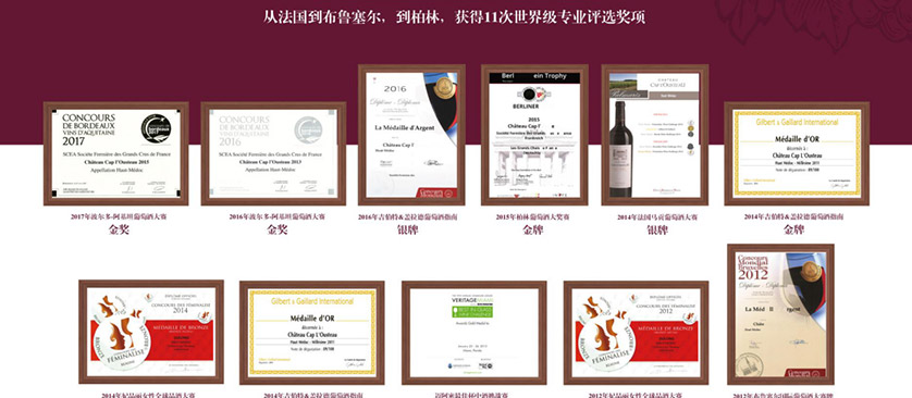 波尔多风土造化、庄园生态种植和金牌酿酒师倾力管理的基础下,Producteur Comande康曼笛获得了11次世界级专业奖项。从法国波尔多-阿基坦葡萄酒大赛荣膺金奖,再到柏林、布鲁塞尔国际葡萄酒大赛上斩获荣誉,Producteur Comande康曼笛红酒的品质不断得到了业内人士的口碑推荐。